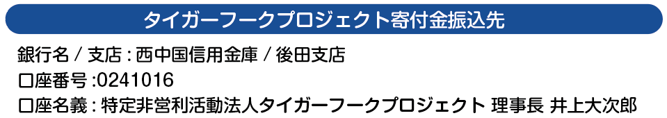 寄付によってタイガーフークプロジェクトへご参加ください。