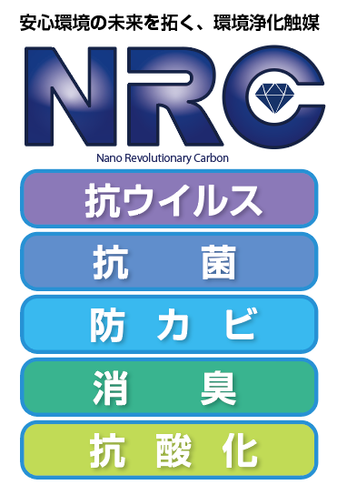 NRCを施工する事により高い防カビ機能を発揮し、さらには抗ウイルス(インフルエンザなど)・抗菌(O-157,O-111,大腸菌など)・消臭(ホルムアルデヒド・アンモニアなど)・抗酸化の5つの機能をもっています。