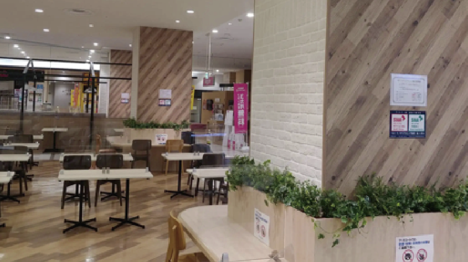来店のお客様が安心して挙式,宴会,お食事が出来るように待合室、ご商談室、椅子,喫煙所、トイレ,エスカレーターなど触媒いたしました。