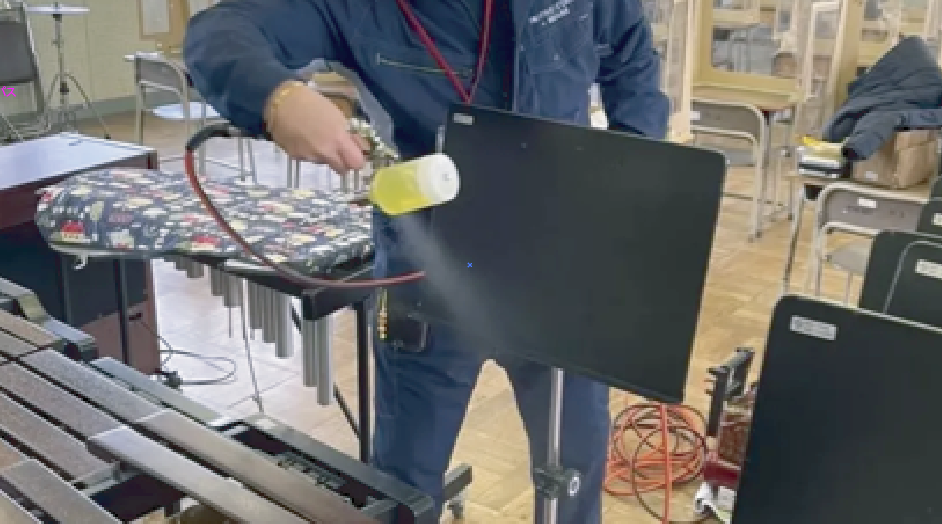 音楽室、楽器の触媒させて頂きました。 これで、子ども達が楽器の演奏を安心して出来ます。 今だからこそ必要と思います。